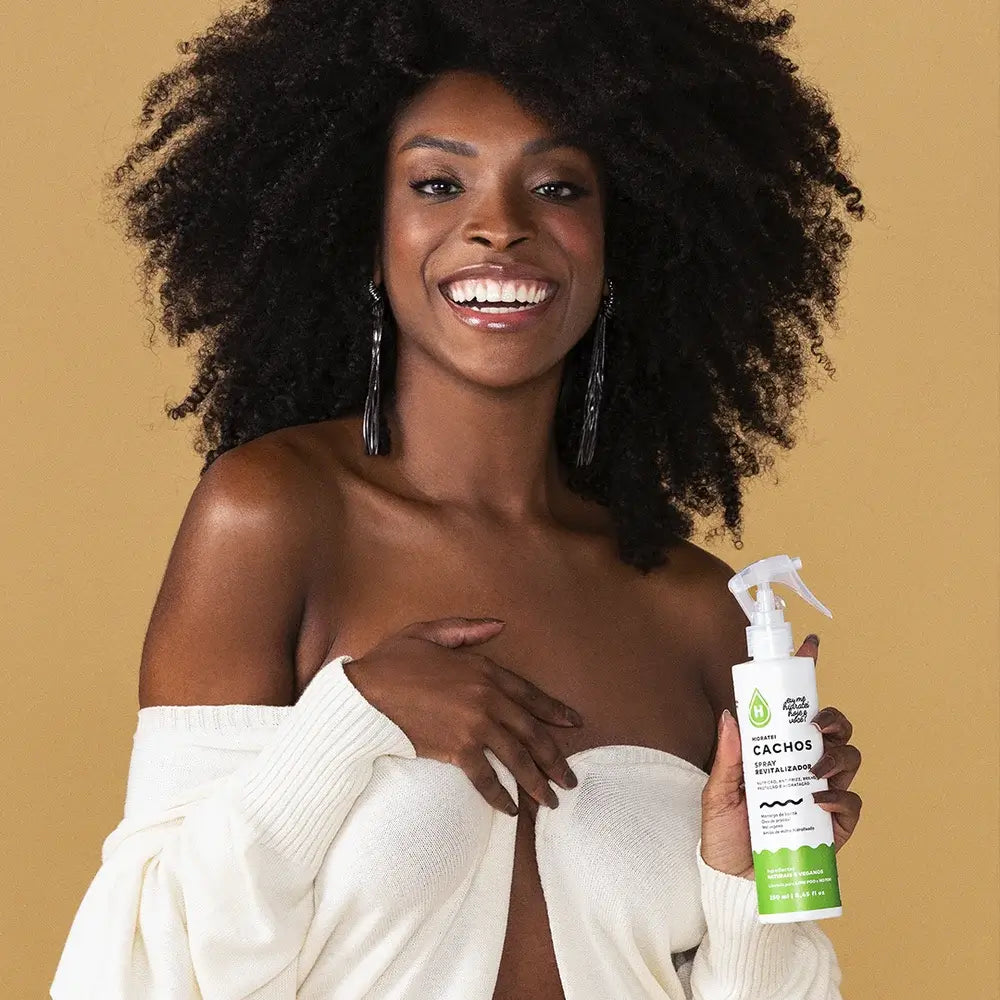 O Spray Revitalizador Hidratei Cachos foi desenvolvido para facilitar o dia a dia de cacheadas e crespas, que sofrem com o cabelo amassado ao acordar e até mesmo com a perda dos cachos no dia seguinte à finalização. Formulado com biopolímero de milho que devolve a definição dos fios e ajuda a mantê-la por mais tempo é ideal para revitalizar o cabelo. Além disso, é enriquecido com manteiga de karité que proporciona brilho, maciez e nutrimel atua simultaneamente soltando os fios e controlando o frizz.