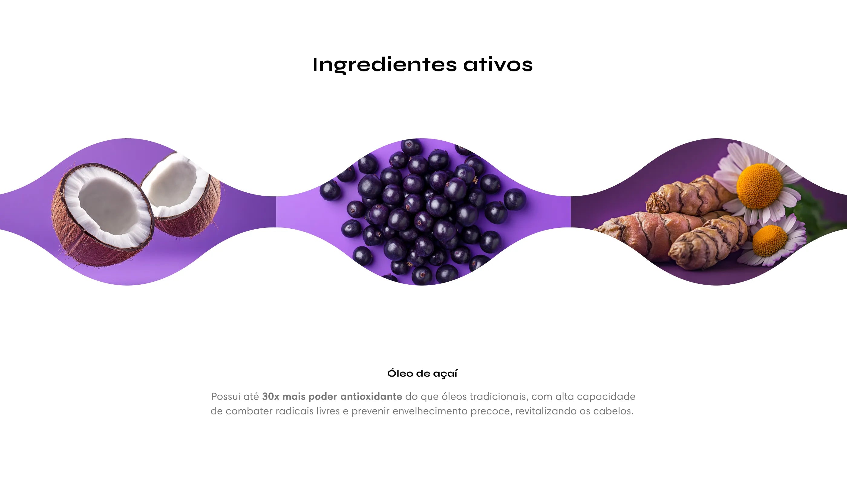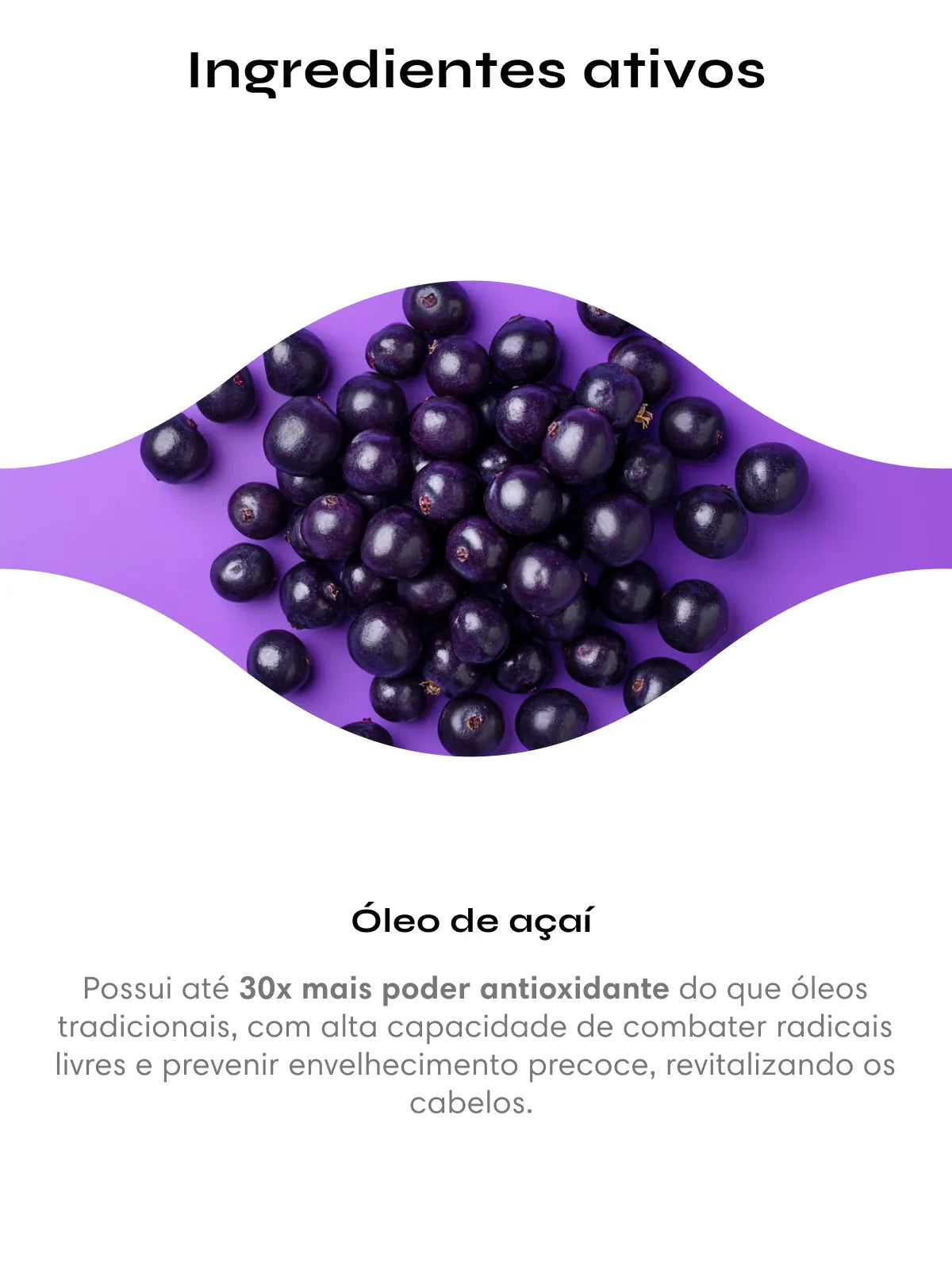 Com óleo de açaí, que possui ação antioxidante, Phytocare AOX, Vitamina E e um blend de ativos de frutas.